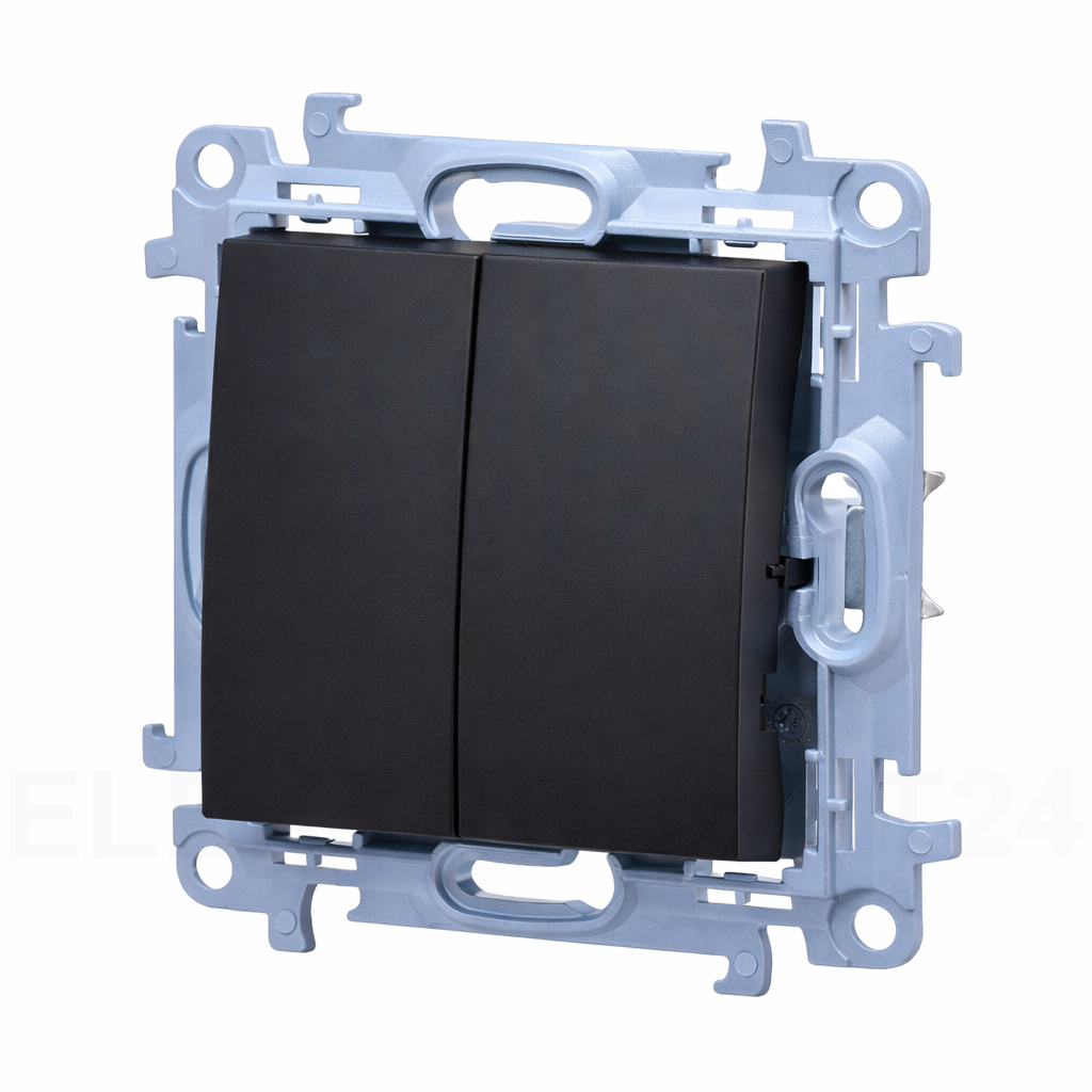 Łącznik podwójny to uniwersalny łącznik przeznaczony do montażu podtynkowego za pomocą śrub lub zatrzasków (pazurków). Wykonany z wysokiej jakości tworzywa sztucznego w kolorze czarnego matu i wyposażony w plastikowy wspornik. Kształt i kolor sprawi, że będzie pasował do tradycyjnie lub nowocześnie urządzonych pomieszczeń. Do łącznika należy dobrać odpowiednią ramkę maskującą na pozostałych naszych aukcjach. Uniwersalna konstrukcja umożliwia łatwy, szybki i bezpieczny montaż zarówno w ramce pojedynczej, jak i wielokrotnej.