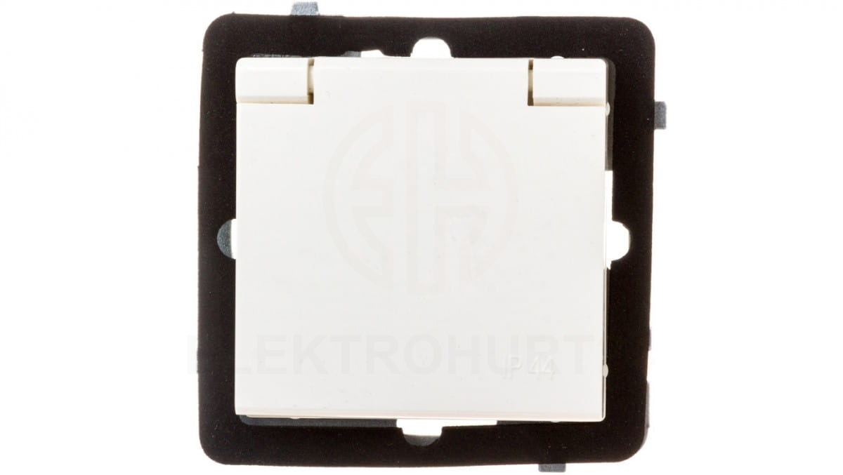 SONATA Gniazdo bryzgoszczelne z/u IP44 klapka ecru GPH-1RZ/m/27/w