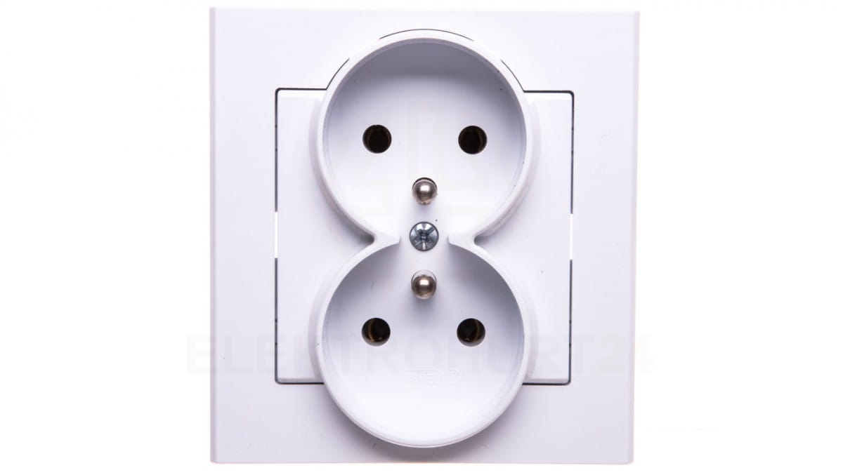 SONATA Gniazdo podwójne z uziemieniem kompletne z ramką biały mat GP-2RZ/75