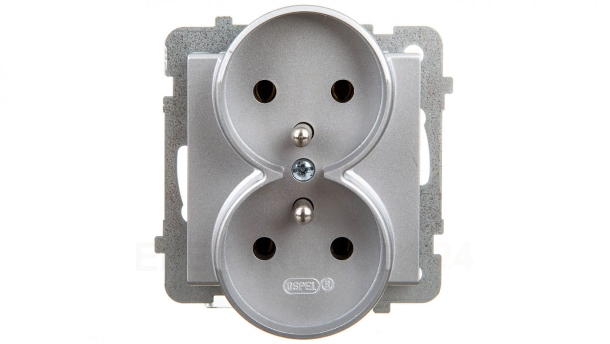 SONATA Gniazdo podwójne z/u srebro mat GP-2RRZ/m/38