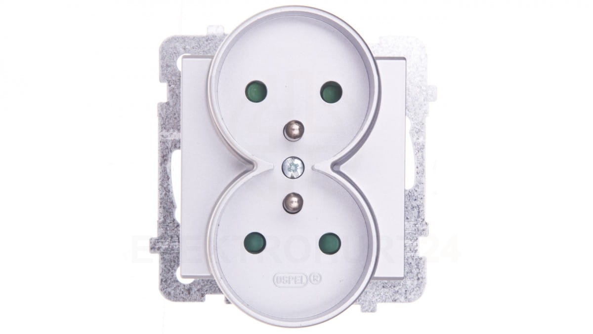 SONATA Gniazdo podwójne z/u z przesłonami srebro mat GP-2RRZP/m/38