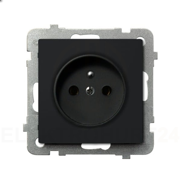 Gniazdo elektryczne o pojedynczym wyjściu z uziemieniem, przeznaczone głównie do instalacji wewnątrz domów, biur lub innych budynków. Jest wykonane z wysokiej jakości materiałów, a jego wykończenie w kolorze czarnym metaliku nadaje mu elegancki wygląd. Za produkcję odpowiada sprawdzona firma Ospel.