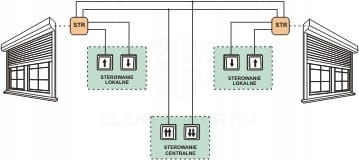 dla sterowania lokalnego i centralnego. Jeżeli sterownik wykona rozkaz Centralny – góra, to kolejne naciśnięcie przycisku lokalnego uruchomi roletę w dół
