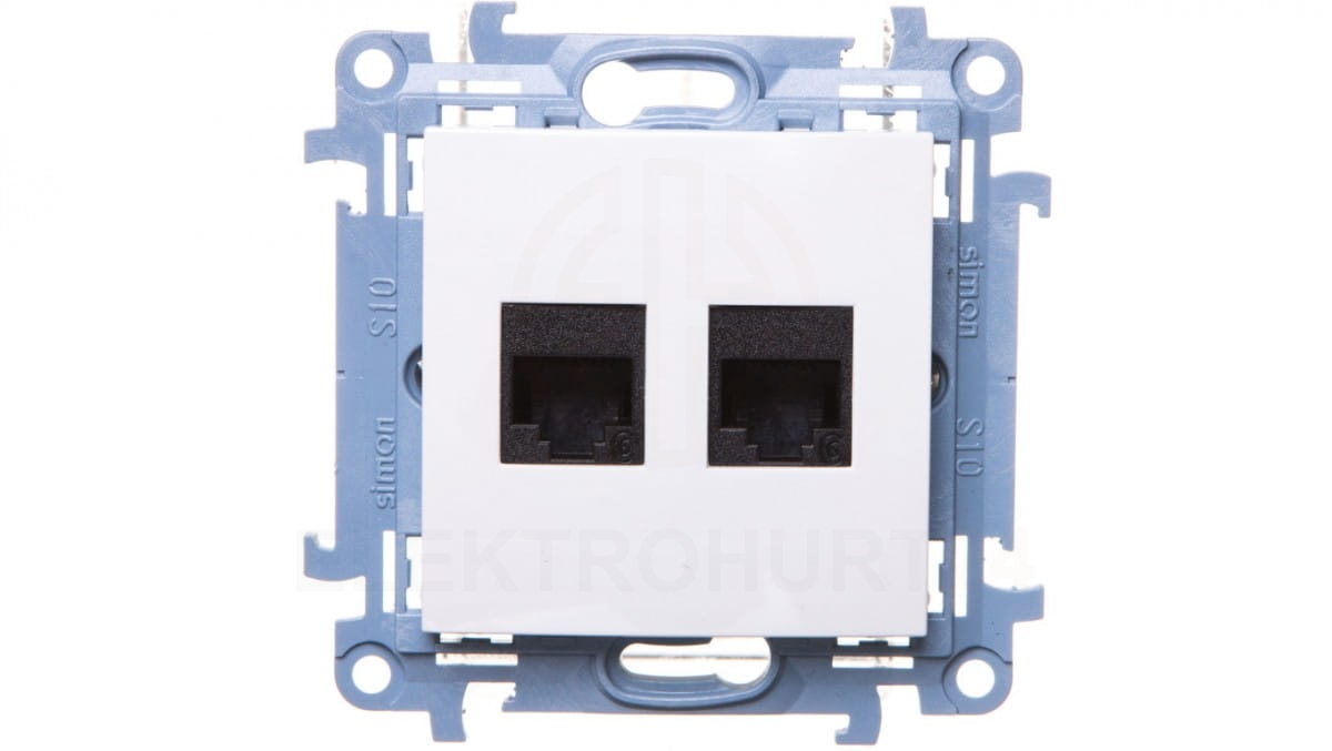 Simon 10 Gniazdo komputerowe podwójne 2xRJ45 kat.6 białe C62.01/11