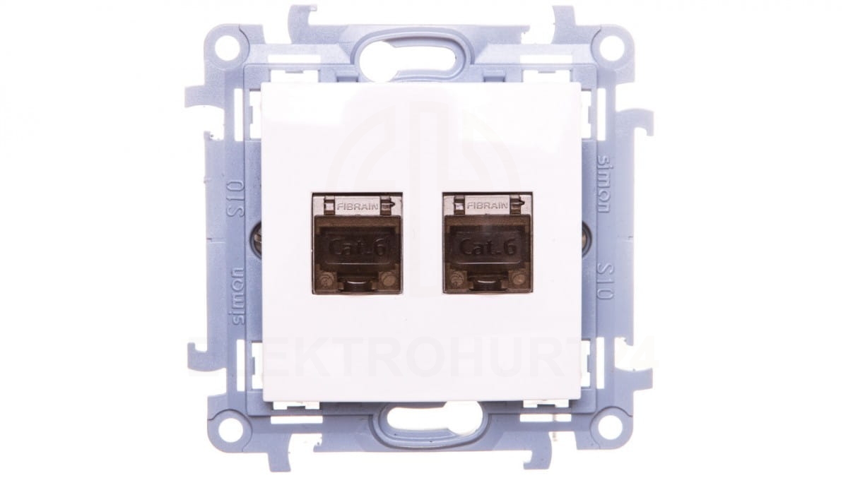 Simon 10 Gniazdo komputerowe podwójne 2xRJ45 kat.6 ekranowane białe C62E.01/11