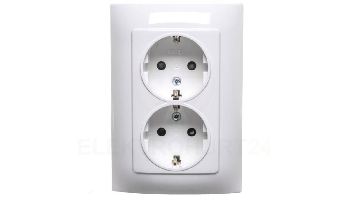 Simon 10 Gniazdo podwójne SCHUKO z przesłonami białe 16A 250V IP20 CGSZ2Z/11
