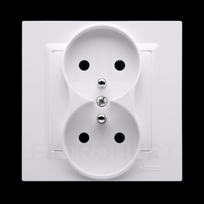 Producent: Kontakt-Simon | Typ: Gniazdo podwójne kompletne (monoblock) | Uziemienie: bolec ochronny | Kolor: biały | Seria: Simon 10 | CGZ2/11