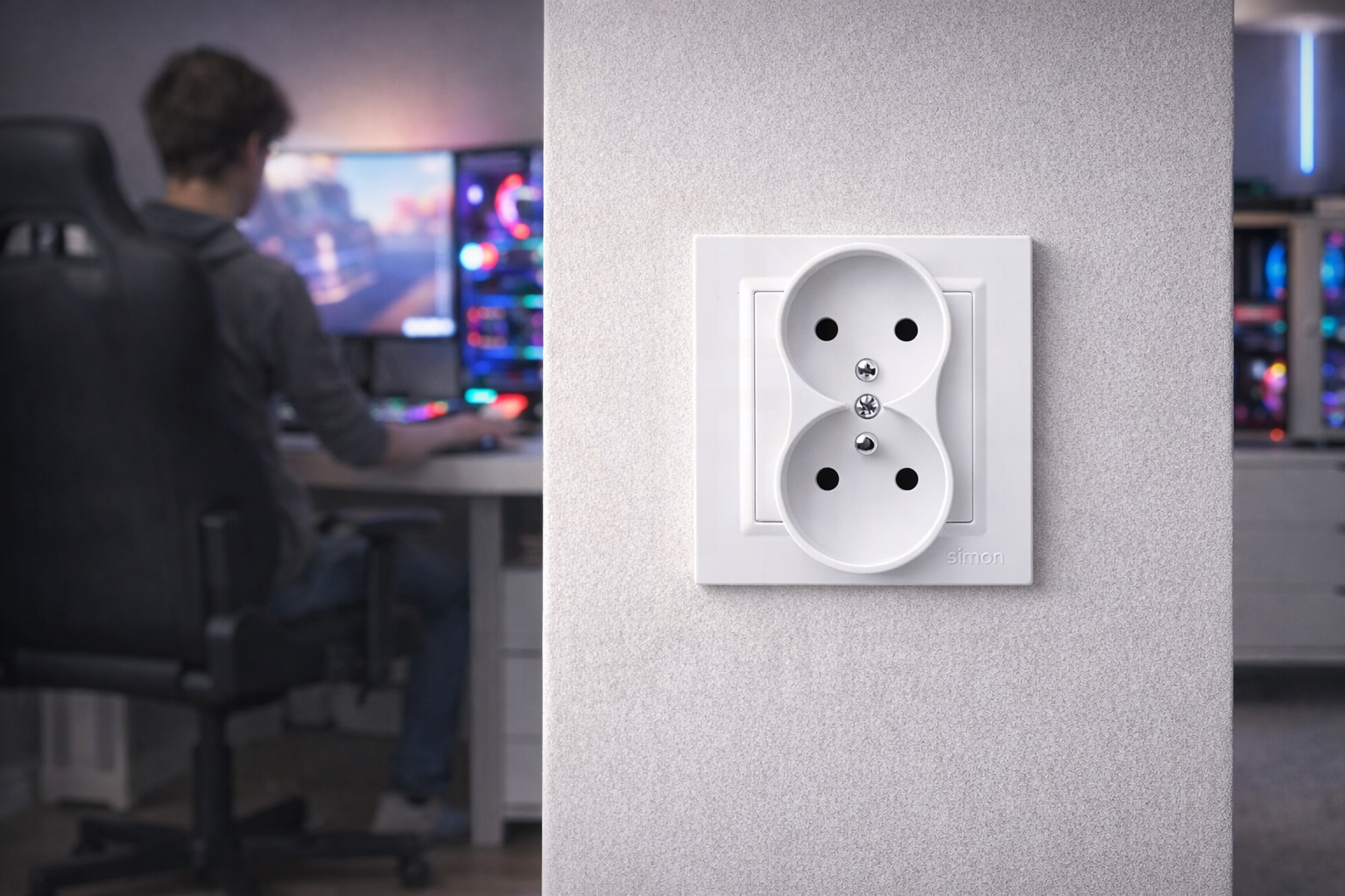 Gniazdo podwójne Simon 10 CGZ2/11 w wersji kompletnej (monoblock) przeznaczone jest do montażu natynkowego w instalacjach elektrycznych. Umożliwia podłączenie dwóch urządzeń jednocześnie w jednym punkcie zasilania. Wyposażone w bolec ochronny zapewnia prawidłowe uziemienie podłączonych odbiorników.