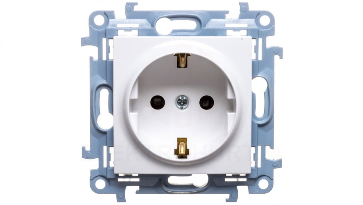 Simon 10 Gniazdo pojedyncze SCHUKO z przesłonami białe 16A 250V IP20 CGSZ1Z.01/11