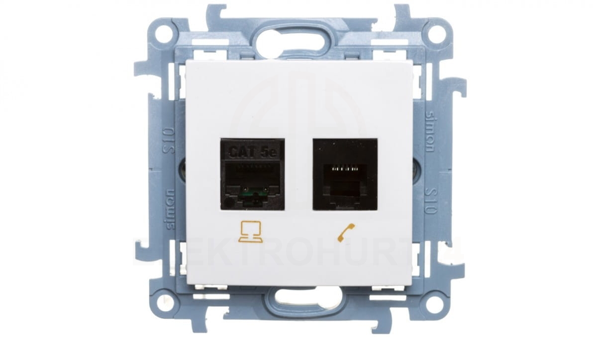 Simon 10 Gniazdo teleinformatyczne RJ45+RJ11 kat.5e białe C5T.01/11