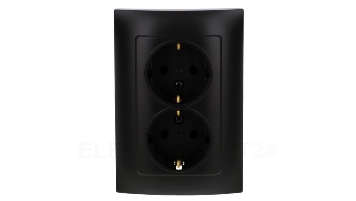 Simon 10 Gniazdo wtyczkowe Schuko podwójne 16A, 250V, zaciski śrubowe czarny mat CGSZ2/49