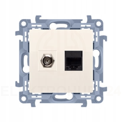 Gniazdo antenowe typu F + komputerowe RJ 45 kat. 5e kremowe