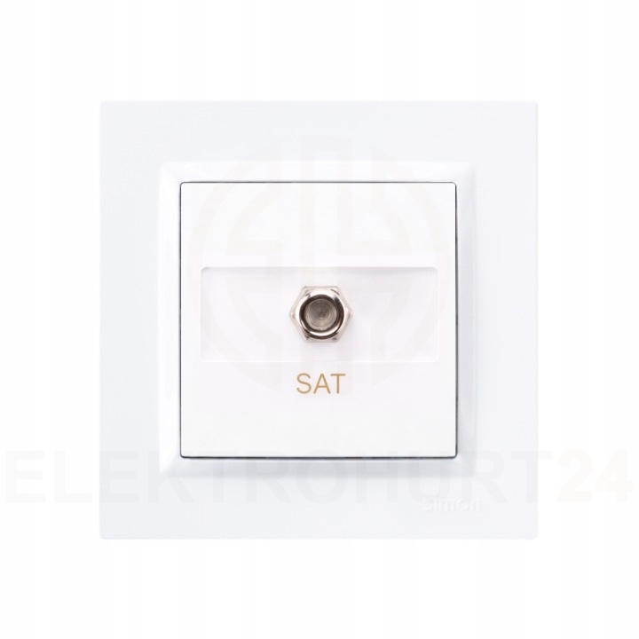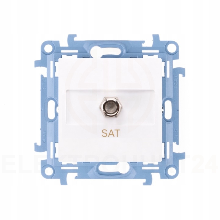 Gniazdo antenowe SAT przeznaczone do podłączenia instalacji telewizji satelitarnej w systemach RTV/SAT. Umożliwia doprowadzenie sygnału do odbiornika w sposób uporządkowany i estetyczny. Konstrukcja kompatybilna z systemem Simon 10 pozwala na montaż z ramkami tej samej serii oraz integrację z innym osprzętem elektroinstalacyjnym.