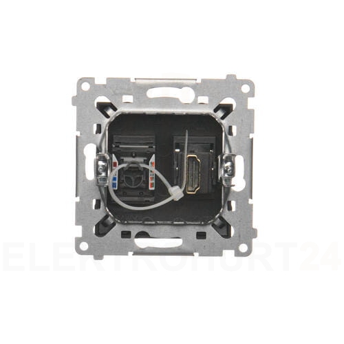 Gniazdo HDMI oraz gniazdo komputerowe RJ45 kat. 6 serii Kontakt Simon 54. Przeznaczone do montażu podtynkowego za pomocą śrub lub zatrzasków (pazurków). Wykonany z wysokiej jakości tworzywa sztucznego w kolorze CZARNYM i wyposażony w metalowy wspornik. Kształt i kolor sprawi, że będzie pasował do tradycyjnie lub nowocześnie urządzonych pomieszczeń. Do gniazda należy dobrać odpowiednią ramkę maskującą.