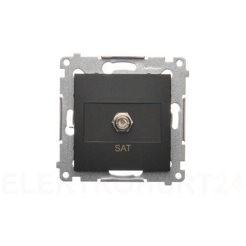 Gniazdo antenowe SAT typu F (nakręcane) marki KONTAKT SIMON serii 54. Przeznaczone do montażu podtynkowego za pomocą śrub lub zatrzasków (pazurków). Wykonany z wysokiej jakości tworzywa sztucznego w kolorze czarnym i wyposażony w metalowy wspornik. Kształt i kolor sprawi, że będzie pasował do tradycyjnie lub nowocześnie urządzonych pomieszczeń. Do gniazda należy dobrać odpowiednią ramkę maskującą. Uniwersalna konstrukcja umożliwia łatwy, szybki i bezpieczny montaż zarówno w ramce pojedynczej, jak i wielokrotnej.