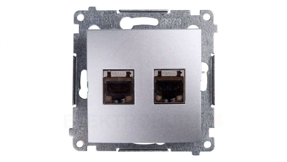 Simon 54 Gniazdo komputerowe podwójne 2xRJ45 kat.6 ekranowane z przesłoną srebrny mat D62E.01/43