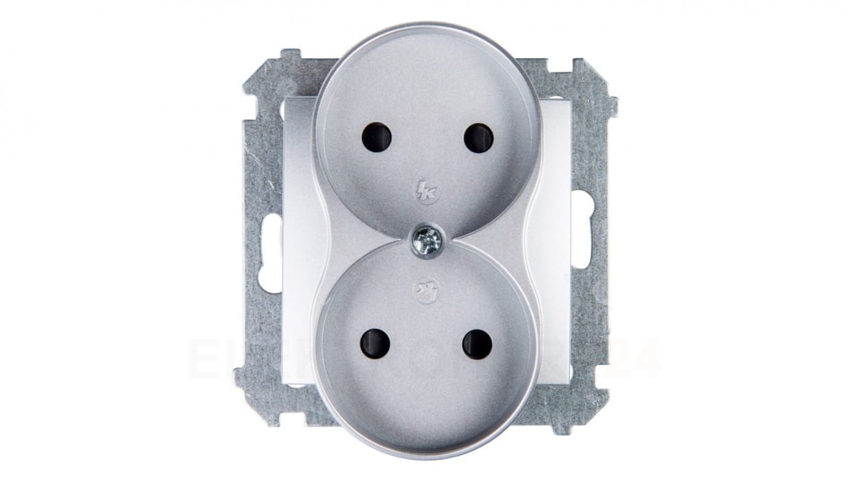 Simon 54 Gniazdo podwójne b/u 16A IP20 srebrny mat DG2MZ.01/43