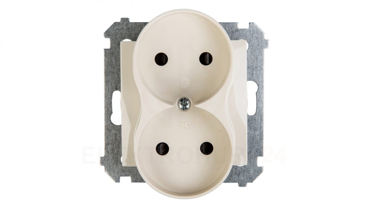 Simon 54 Gniazdo podwójne b/u 16A IP20 z przesłoną torów kremowe DG2MZ.01/41