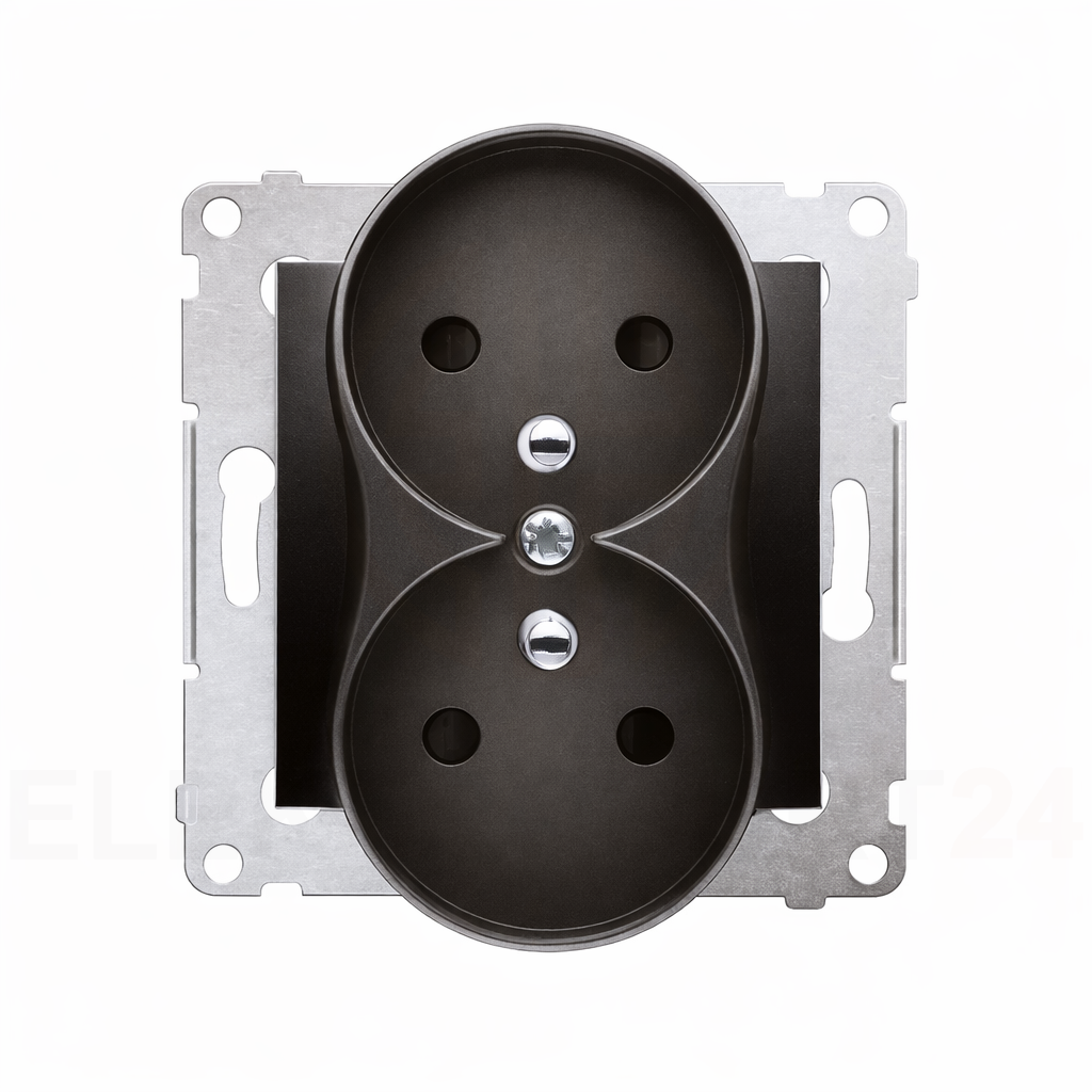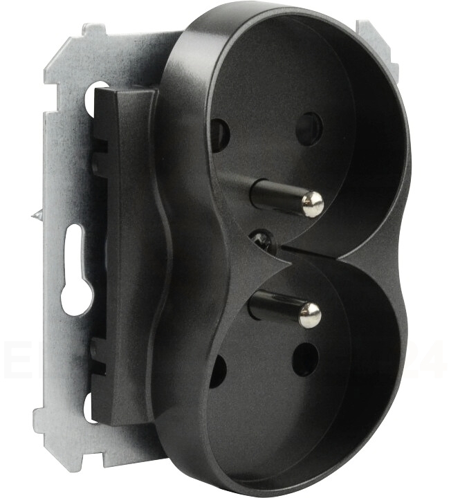 - Rodzaj produktu: Gniazdo wtyczkowe podwójne z uziemieniem i przesłonami torów prądowych (zabezpieczenie przed dziećmi)