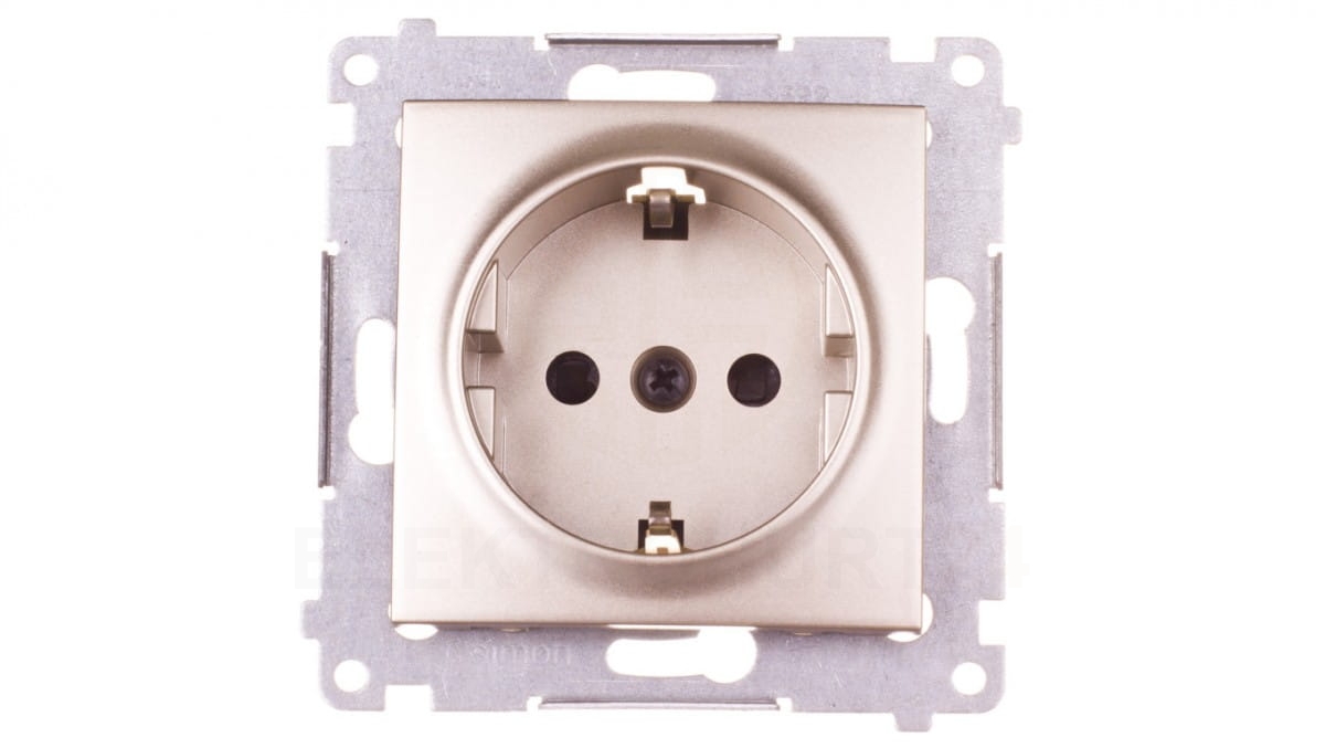 Simon 54 Gniazdo pojedyncze SCHUKO z/u 16A IP20 z przesłoną torów złoty mat DGSz1Z.01/44