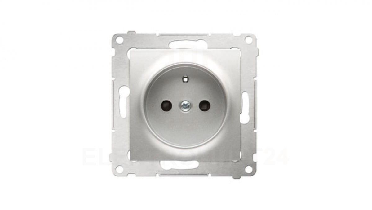 Simon 54 Gniazdo pojedyncze z/u 16A IP20 z przesłoną torów srebrny mat DGZ1Z.01/43