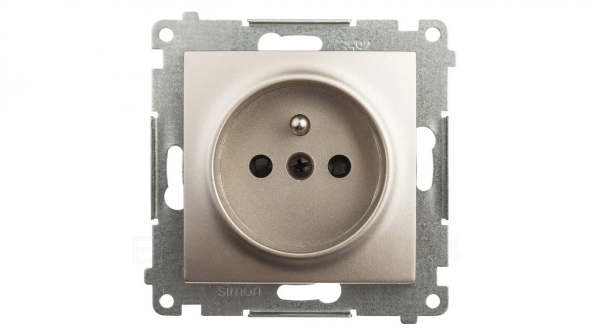 Simon 54 Gniazdo pojedyncze z/u 16A z przesłoną torów złoty mat DGZ1Z.01/44