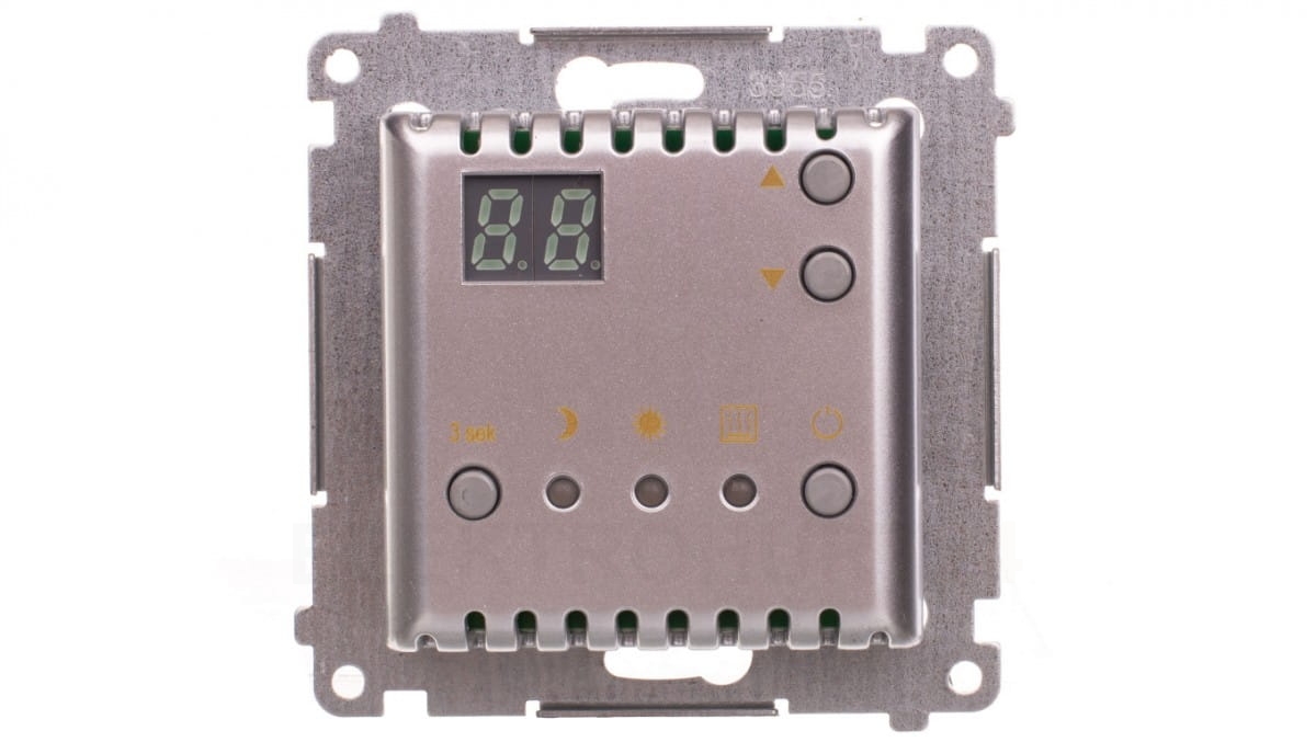 Simon 54 Regulator temperatury z wyświetlaczem z czujnikiem wewnętrznym 16(2) A 230V srebrny mat DTRNW.01/43