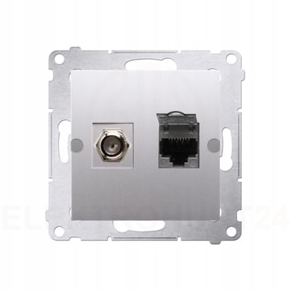 Gniazdo antenowe typu F + komputerowe RJ 45 kat.6 srebrny