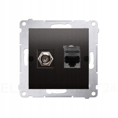 Gniazdo antenowe typu F + komputerowe RJ 45 kat.6 antracyt