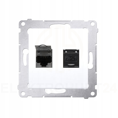 Gniazdo komputerowe podwójne RJ45 (internetowe) marki KONTAKT SIMON serii 54. Przeznaczone do montażu podtynkowego za pomocą śrub lub zatrzasków (pazurków). Wykonany z wysokiej jakości tworzywa sztucznego w kolorze białym i wyposażony w metalowy wspornik. Kształt i kolor sprawi, że będzie pasował do tradycyjnie lub nowocześnie urządzonych pomieszczeń.Do gniazda należy dobrać odpowiednią ramkę maskującą. Uniwersalna konstrukcja umożliwia łatwy, szybki i bezpieczny montaż zarówno w ramce pojedynczej, jak i wielokrotnej.