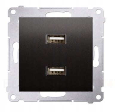 Gniazdo-ładowarka USB podwójna 2,1A marki KONTAKT SIMON serii 54. Przeznaczone do montażu podtynkowego za pomocą śrub lub zatrzasków (pazurków). Wykonany z wysokiej jakości tworzywa sztucznego w kolorze antracytowym i wyposażony w metalowy wspornik. Kształt i kolor sprawi, że będzie pasował do tradycyjnie lub nowocześnie urządzonych pomieszczeń.Do gniazda należy dobrać odpowiednią ramkę maskującą na pozostałych naszych aukcjach. Uniwersalna konstrukcja umożliwia łatwy, szybki i bezpieczny montaż zarówno w ramce pojedynczej, jak i wielokrotnej.