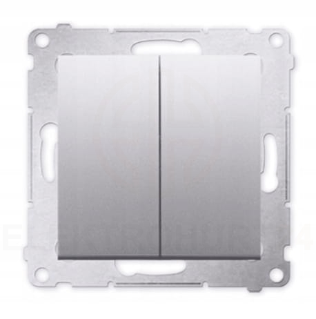 Przycisk podwójny, odbijający marki KONTAKT SIMON serii 54. Uniwersalny przycisk przeznaczony do montażu podtynkowego za pomocą śrub lub zatrzasków (pazurków). Wykonany z wysokiej jakości tworzywa sztucznego w kolorze srebrnym i wyposażony w metalowy wspornik. Kształt i kolor sprawi, że będzie pasował do tradycyjnie lub nowocześnie urządzonych pomieszczeń. Do łącznika należy dobrać odpowiednią ramkę maskującą. Uniwersalna konstrukcja umożliwia łatwy, szybki i bezpieczny montaż zarówno w ramce pojedynczej, jak i wielokrotnej.