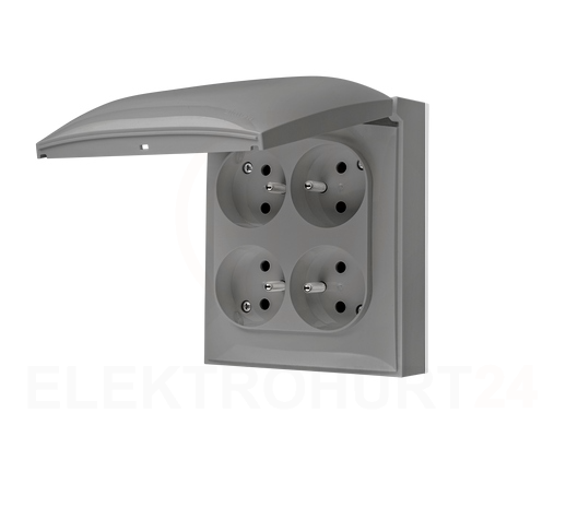 Gniazdo wtyczkowe poczwórne z uziemieniem - w wersji IP44 - klapka w kolorze pokrywy szary 16A