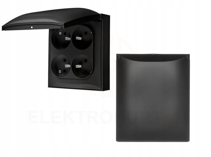 • Nazwa produktu/Rodzaj: gniazdo wtyczkowe poczwórne z uziemieniem - w wersji IP44 - klapka w kolorze pokrywy