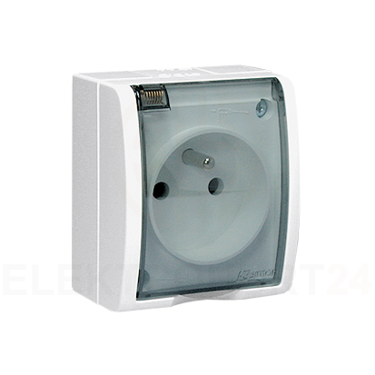 • Nazwa produktu/Rodzaj: gniazdo wtyczkowe pojedyncze z uziemieniem - w wersji IP54 - klapka w kolorze transparentnym