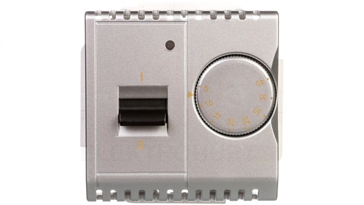 Simon Basic Regulator temperatury z czujnikiem wewnętrznym 16A 230V srebrny mat BMRT10w.02/43