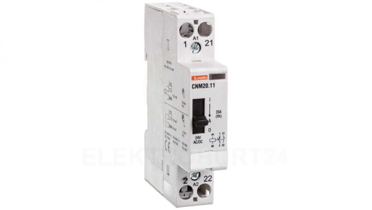 Stycznik modułowy z dźwignią do sterowania ręcznego 20A 1Z 1R cewka 24 VAC/DC CNM2011024