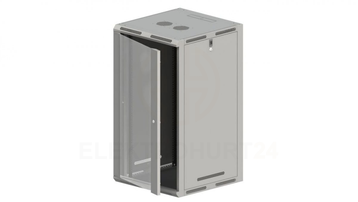 Szafa rack wisząca/stojąca 19 cali 21U 600x600, niedzielona, drzwi szklane, kolor szary FLAT PACK