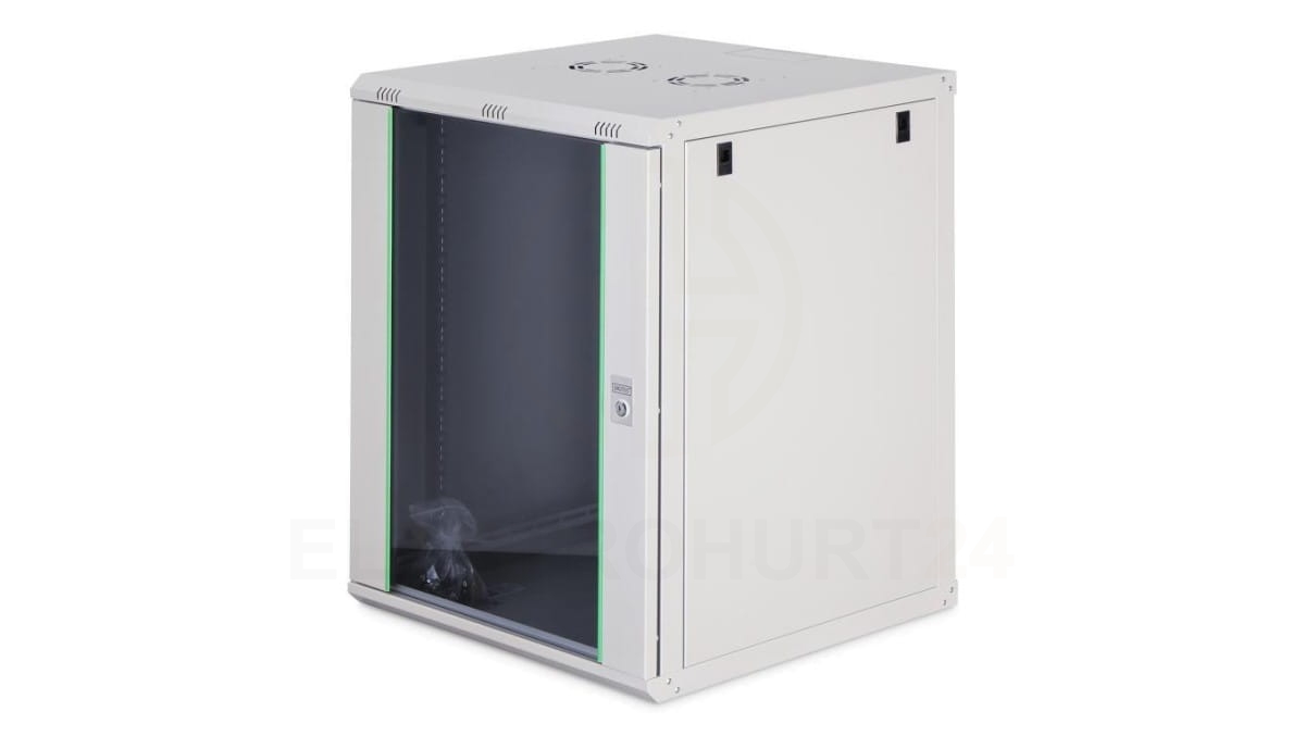Szafa sieciowa wisząca Dynamic 19 16U rack 600x600, drzwi szyba, szary, niezłożona, 60kg DN-37114