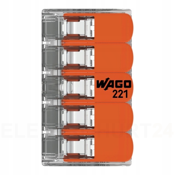 Wago szybkozłączka 5x0,5-6mm2 transparentna / pomarańczowa 221-615