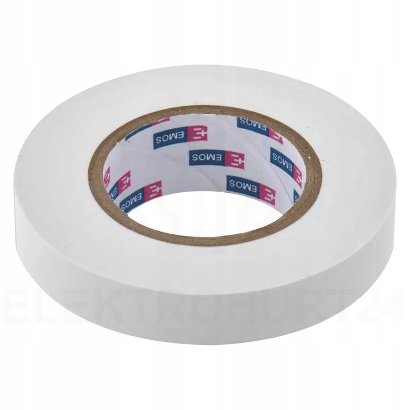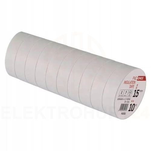TAŚMA IZOLACYJNA PVC 15 mm/10 m Producent: EMOS | Długość rolki: 10 m | Szerokość rolki: 15 mm | Kolor: Biały | Grubość taśmy: 0,13 mm