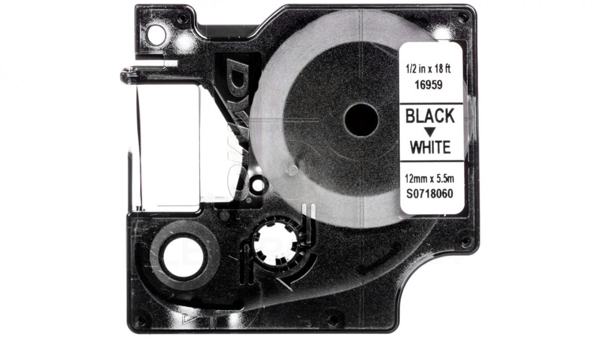 Taśma poliestrowa trwała do drukarek D1 12mm x 5,5m czarny/biały S0718060