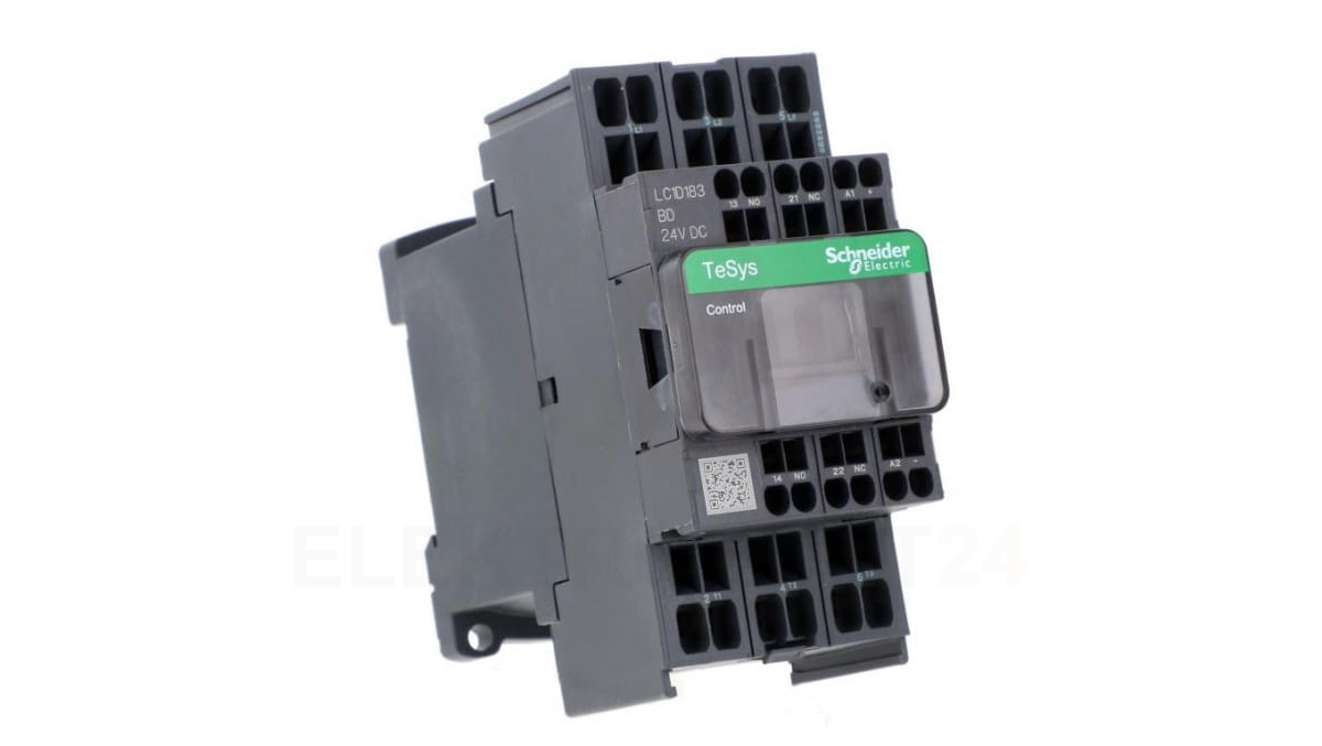 TeSys Deca Stycznik mocy I= 18A AC-3 styki pomocniczy 1R + 1Z napięcie cewki 24 V DC LC1D183BD