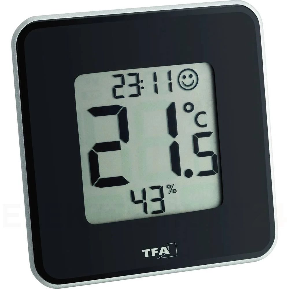 Termometr/higrometr cyfrowy funkcja zegara -20-50C, wilgotność 20-99 bateria CR 2032 czarny 30.5021.01