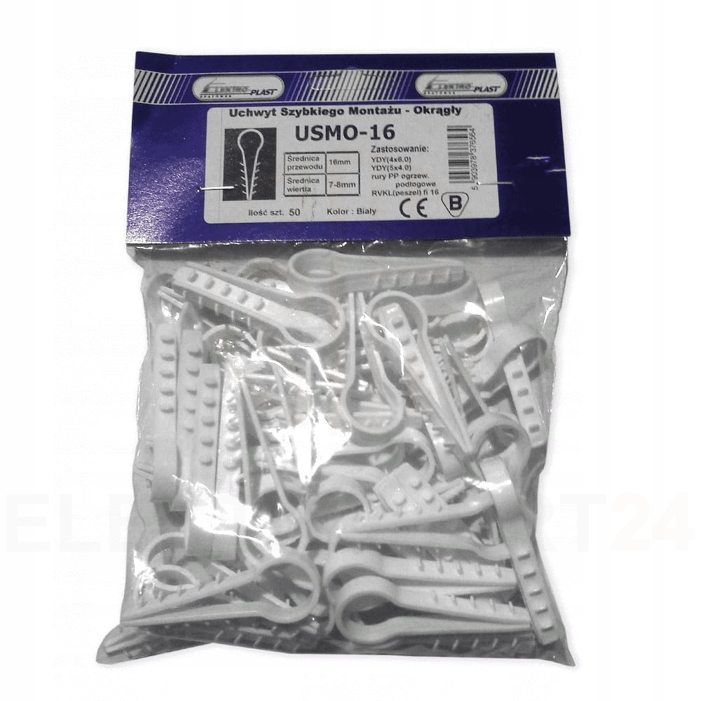 Uchwyt szybkiego montażu USMO-16 14.6 /50szt./ Uchwyty montażowe przystosowane są do montowania przewodów elektrycznych, telekomunikacyjnych, sterowniczych oraz rurek instalacyjnych do różnych powierzchni. Zastosowanie uchwytów montażowych do przewodów gwarantuje min. bardzo szybki montaż, pewność mocowania, profesjonalny wygląd instalacji,