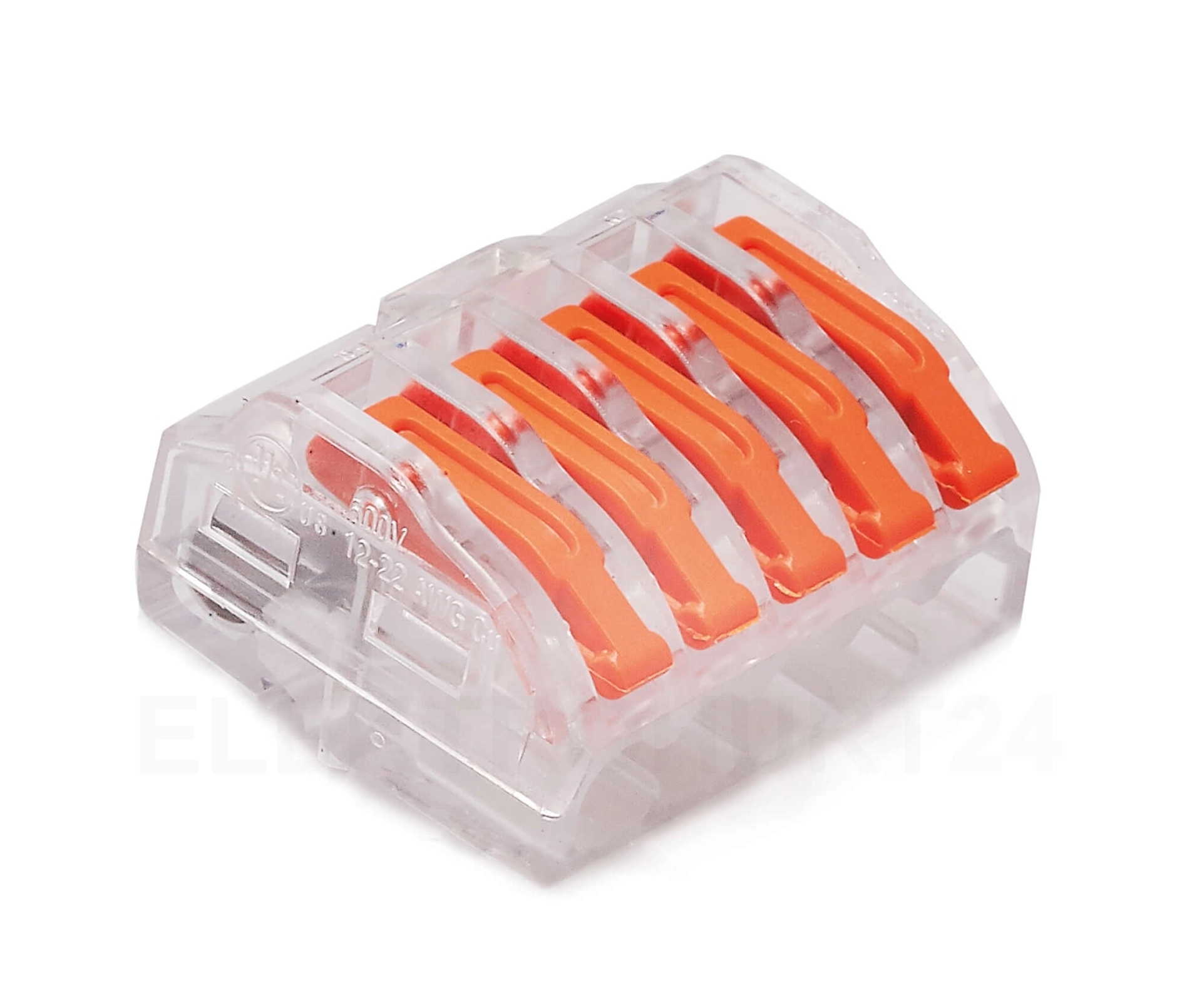 Uniwersalna złączka do przewodów jedno- i wielodrutowych, 5-torowa 2,5mm2 24A transparentna ZU-405 85125000