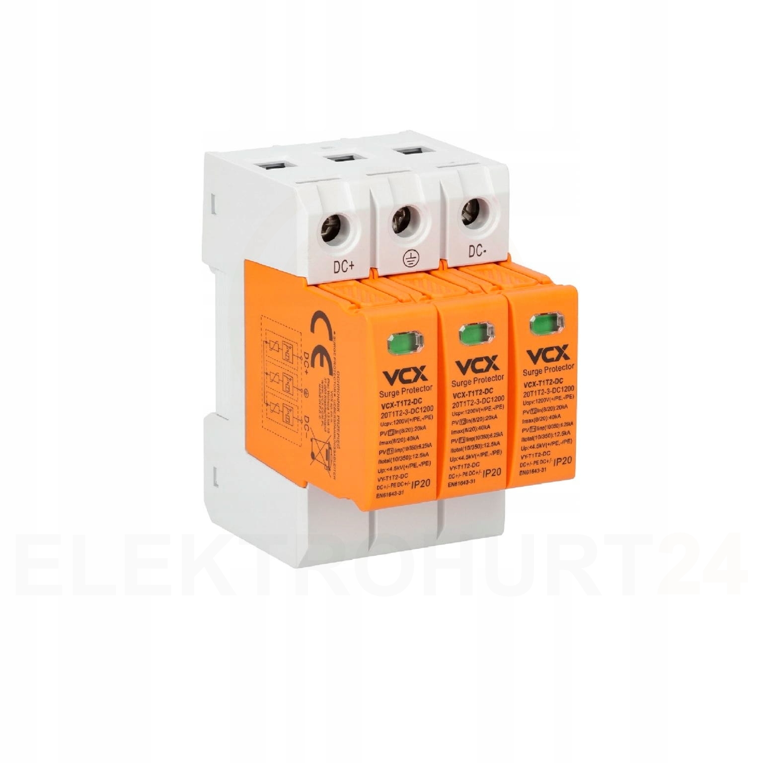 VCX Ograniczniki przepięć fotowoltaiczne DC B+C 3P 1200V (T1T2) 12,5 kA