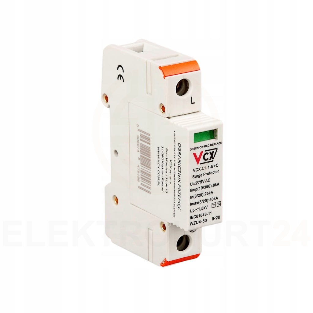 VCX Profesjonalny ogranicznik przepięć B+C 1P T1+T2 12,5kA AC