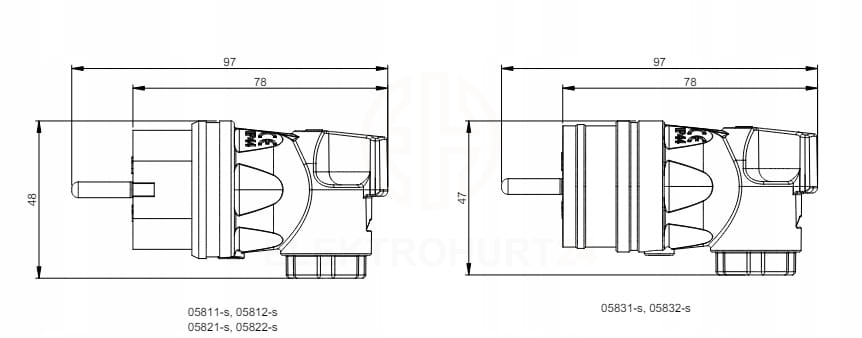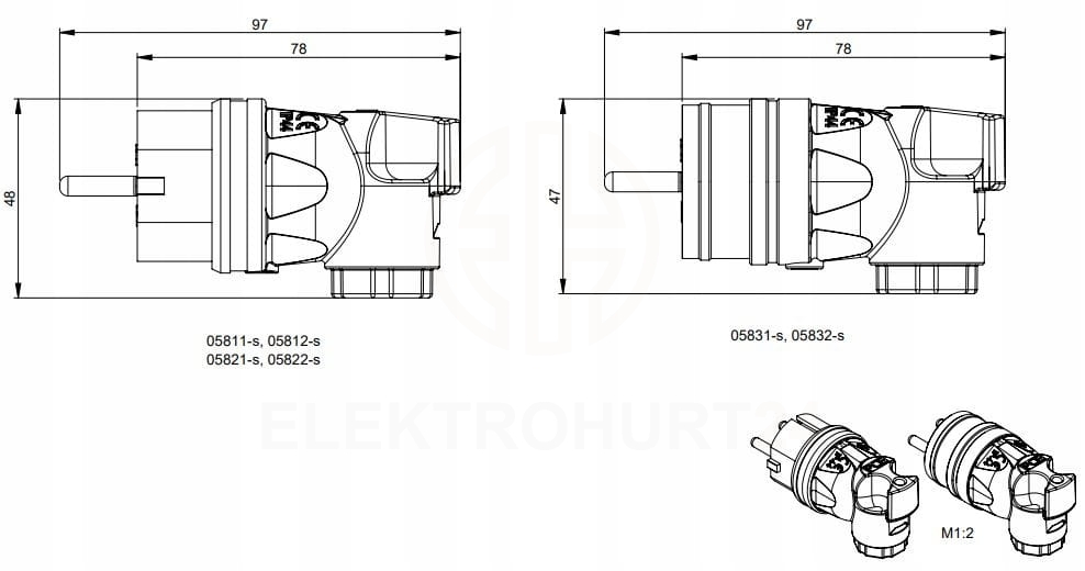 ✅Seria i typ: Wtyczka gumowa 10/16A 2P+Z kątowa uni-schuko 1-faz.IP44 05821-s Taurus PCE