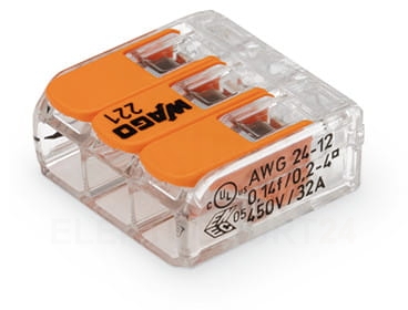 Miniaturowe szybkozłączki instalacyjne. Pozwalają łączyć dowolne kombinacje przewodów o różnych przekrojach. Przezroczysta obudowa umożliwia wzrokową kontrolę prawidłowego ułożenia przewodów oraz otwór pomiarowy. Złączki instalacyjne imponują ułatwioną obsługą: odchylenie i opuszczenie dźwigni otwierającej zacisk jest wreszcie możliwe przy użyciu niewielkiej siły. Zgrubienia na brzegach bocznych ścianek obudowy ułatwiają przytrzymanie serii 221 podczas montażu przewodów.